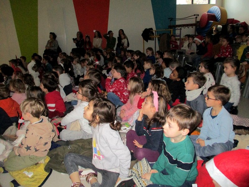 Vendredi 20 décembre,  les enfants se sont rendus dans la salle de sport de l’école et ont été accueilli par un comédien de la compagnie des 3 chardons.