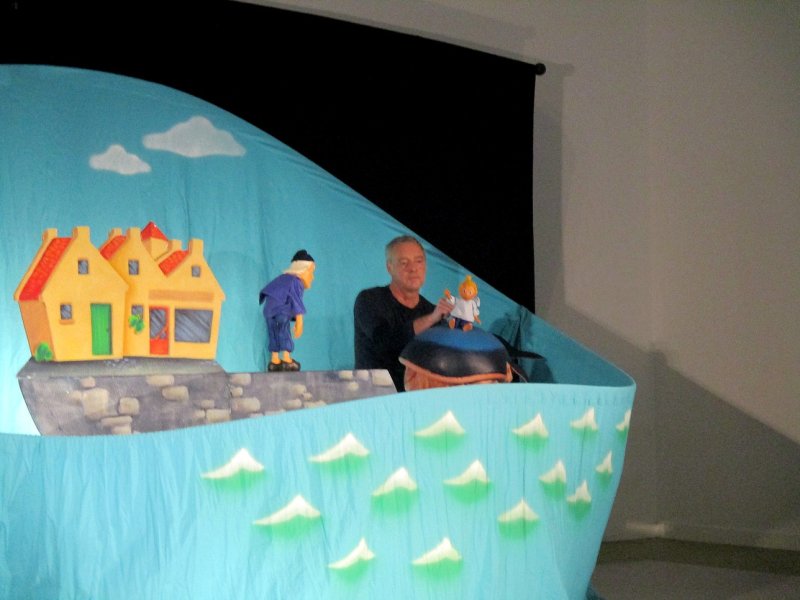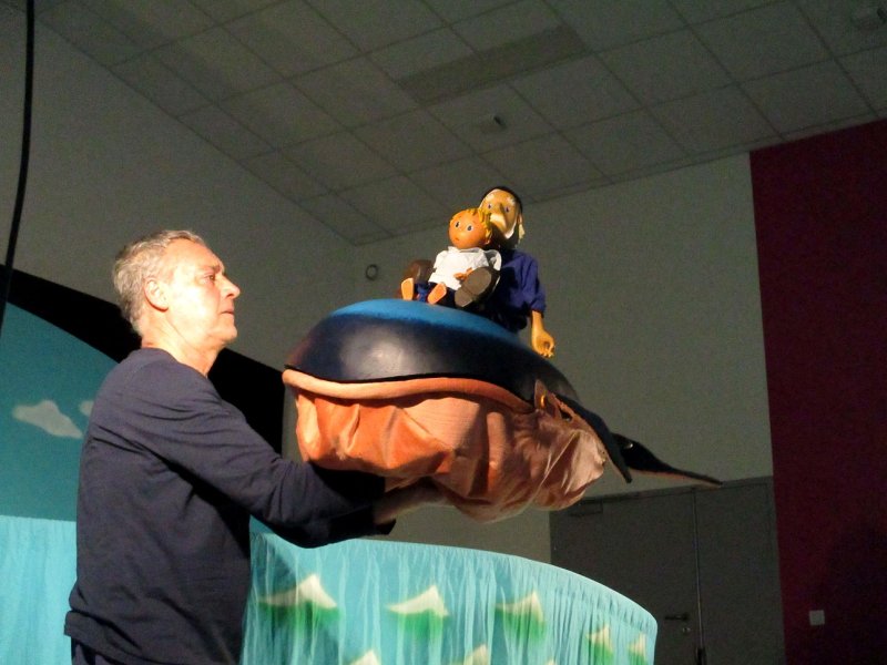 Il a conté l’histoire de « Leïla et la baleine »… Accompagné d’un décor, d’un jeu de lumière, de bandes musicales et de marionnettes, il a réussi à captiver l’assemblée !