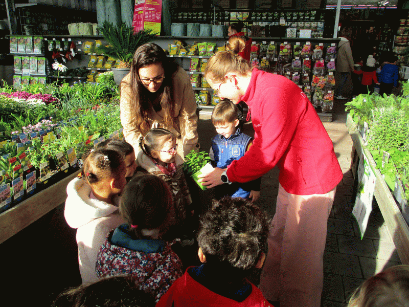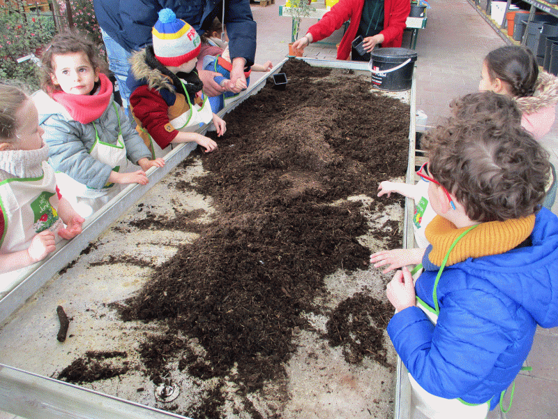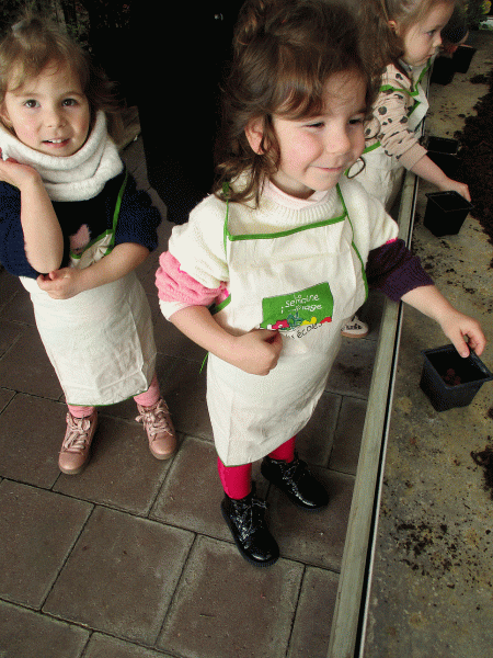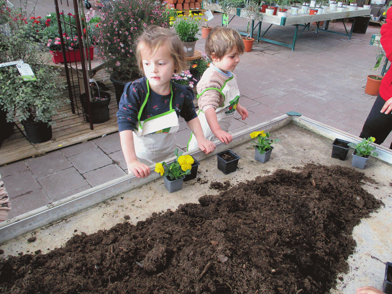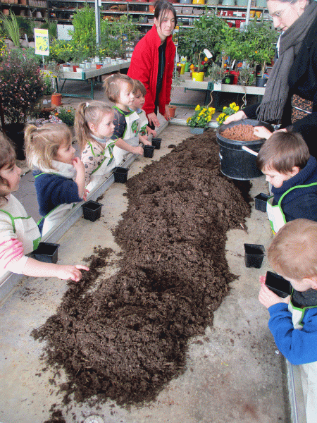 A l’occasion de la semaine du jardinage, les enfants se sont rendus à Desjardins, en bus, pour vivre une initiation au jardinage… Ils ont découvert des outils de jardinage, ont senti des plantes aromatiques et ont planté dans un godet une pensée qu’ils ont rapportée chez eux avec le tablier offert.