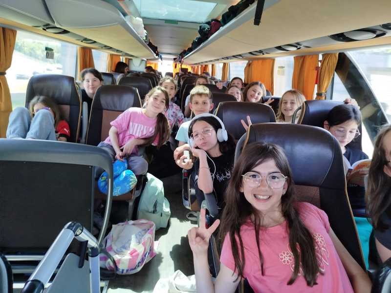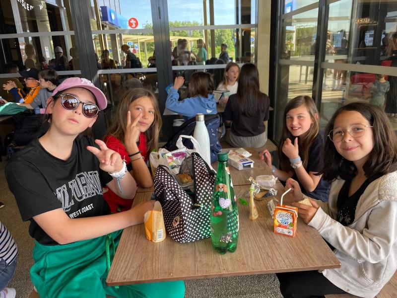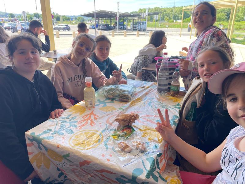 Le voyage s’est déroulé dans le calme et la bonne humeur. Les enfants ont pris leur petit-déjeuner à l’aire du Val de Cher, puis ont déjeuné à l’aire des Volcans. Ils sont très contents de se retrouver entre eux et le cafard du matin a vite été dissipé. Après le goûter, près de Lyon, ils ont découvert la composition de leur chambre : un moment très attendu!