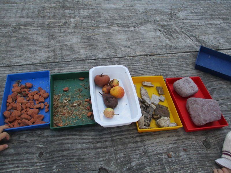 ♦ Ramasser des choses que je vois par terre et les rapporter à la table de tri pour commencer à réaliser des collections.