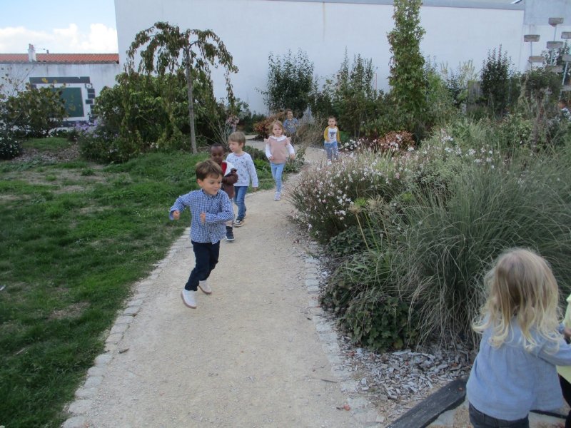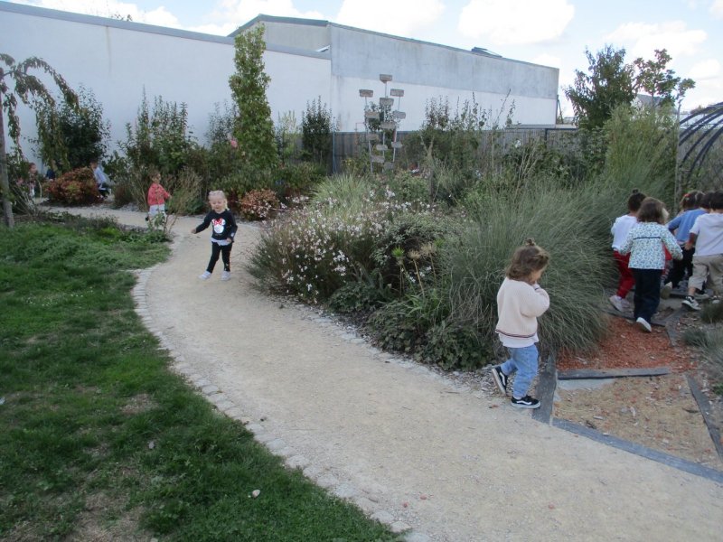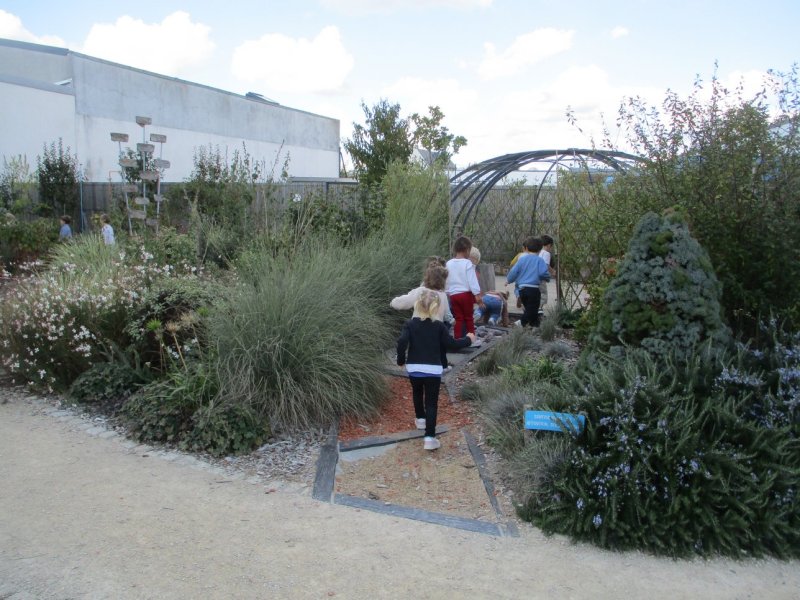 Dans le cadre de la classe dehors qui a lieu une fois par mois, les enfants se sont rendus, fin septembre, dans le jardin des sens à côté de l’école…