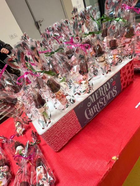 Les lutins de Noël (des parents) ont préparé de magnifiques décorations et les classes de maternelle et CP ont régalé tout le monde avec de délicieux biscuits et confiseries faits à l’école.